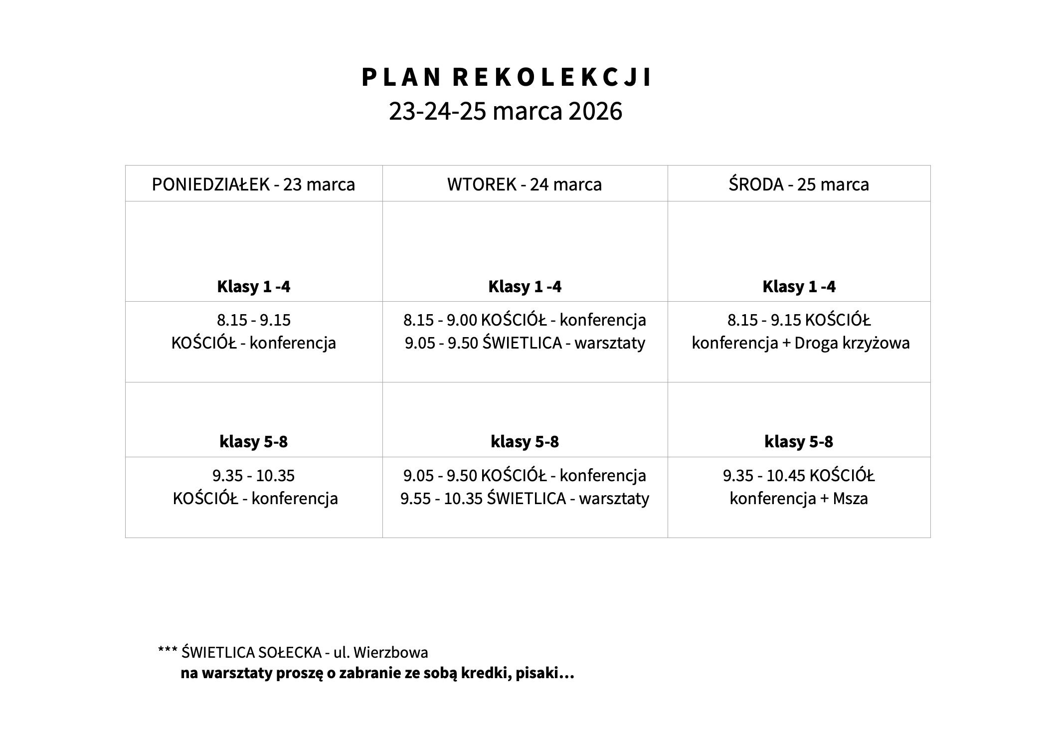 rekolekcje szkolne 2026